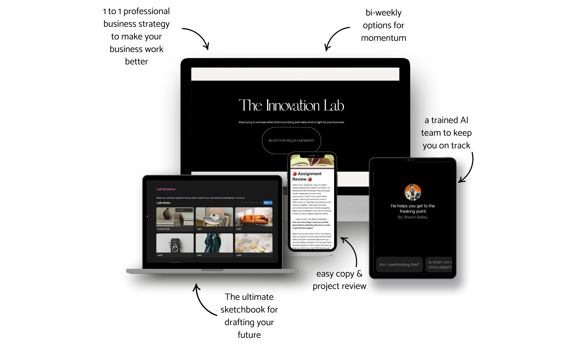 Instead of trying to work in your next big move in between client calls or late at night, the time in the Lab gives you structure, support, and a protected space to work on your business with expert eyes on it.